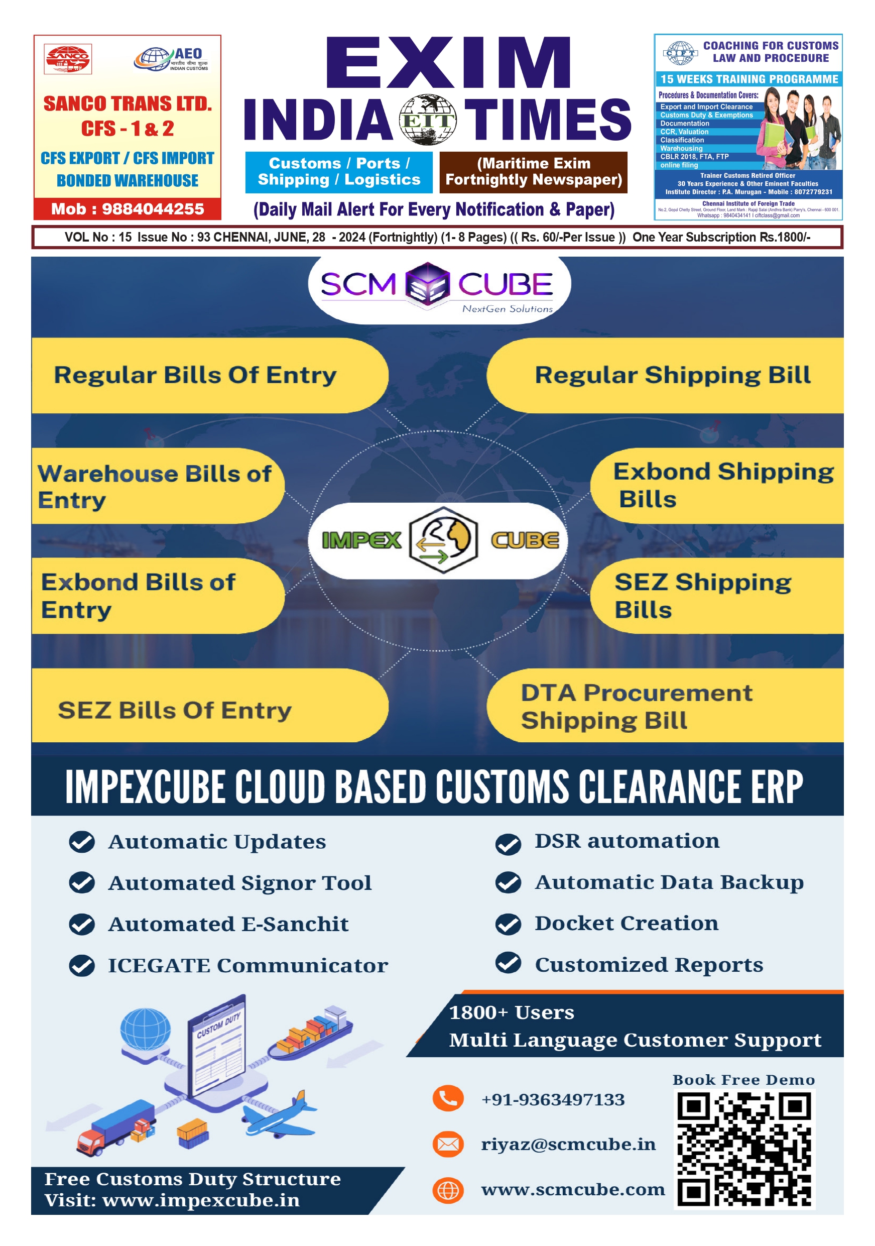 ImpexCube is a web-based, ERP tool that is one of the on-demand Customs Clearance Software for CHA.